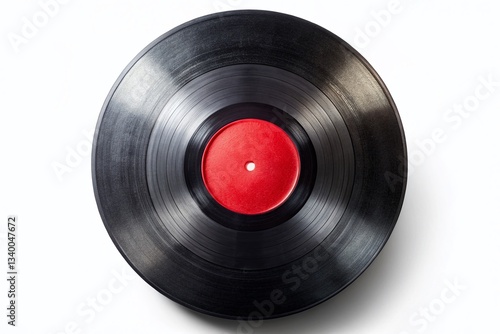 © Sirinporn, Fototapeta premium Double Exposure: Red Vinyl Record Closeup, Grooves & Texture, White Background