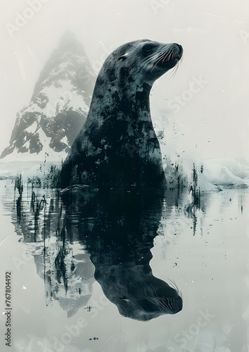 © GLAB, Obraz premium Double Exposure Sea Lion with Iceberg