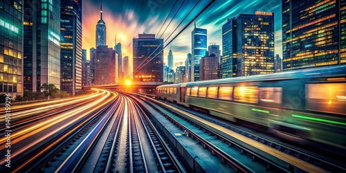 © Adisorn, Fototapeta premium Double Exposure: Subway Train & City Lights - Urban Transit Stock Photo