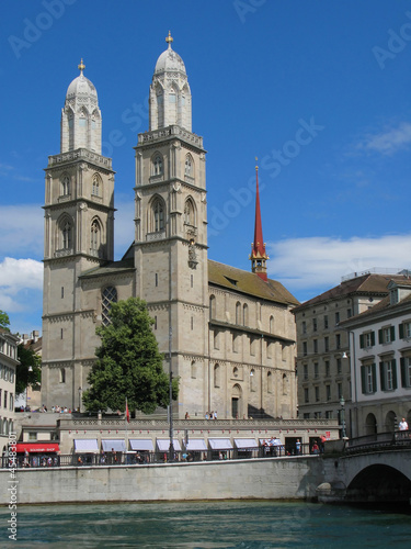 © HappyAlex, Fototapeta premium Double headed Grossmuenster church - symbol of Zurich