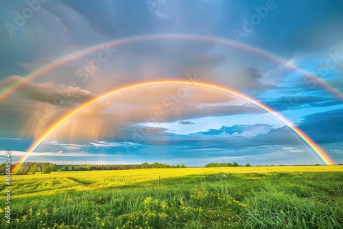 Naklejka premium Double Rainbow Over a Lush Meadow