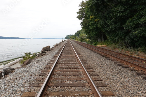 © LifeisticAC, Fototapeta premium Double-track railway near the beach.