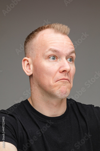 © Вячеслав Косько, Obraz premium Doubtful Caucasian man looking away.