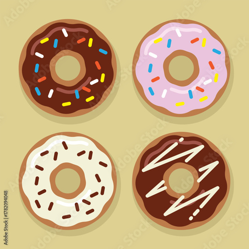 Fototapeta premium doughnut set, pastry, vector illustration
