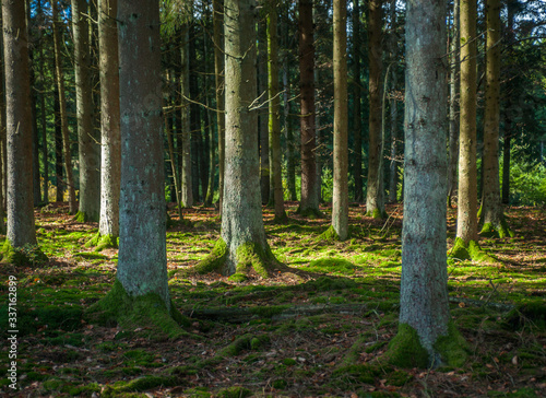 © Stefan, Obraz premium Douglas fir old-growth forest with green herbal layer.
