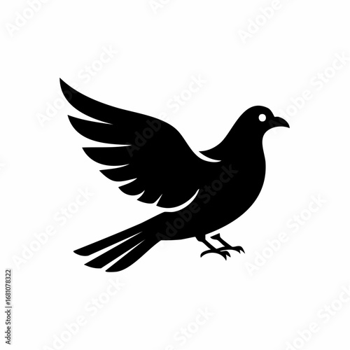© kagras, Obraz premium dove bird black silhouette vector, Simple silhouette Design vector icon with white background. Wild bird
