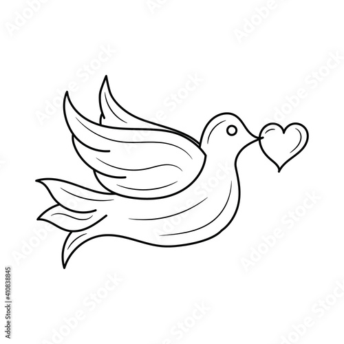 Obraz premium Dove Bird holding heart vector illustration, isolated linear style pictogram