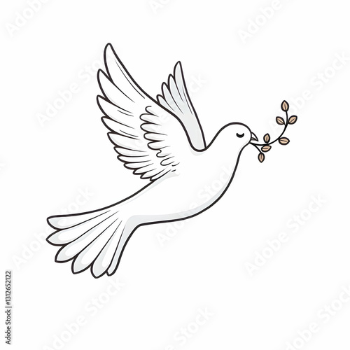 Obraz premium Dove carrying a twig in its beak, line art illustration