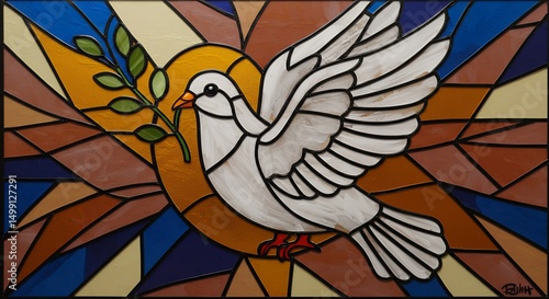 Naklejka premium Dove Carrying Olive Branch Stained Glass Art