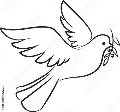 © Vector Tradition, Fototapeta premium Dove Christmas holy bird in flight, twig in beak