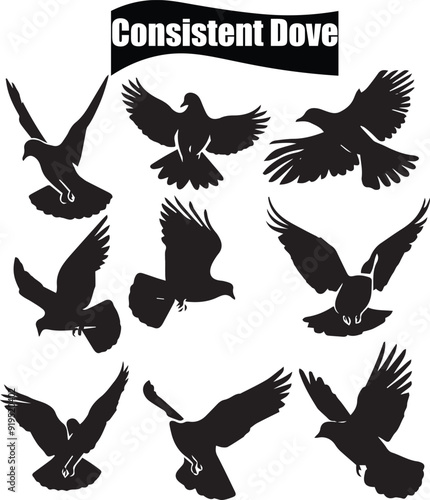 © Nahid, Obraz premium Dove Dark Silhouette Shapes Vector Set