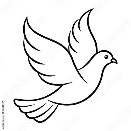 © Ferdous, Obraz premium dove flying lineart vector illustration on white background