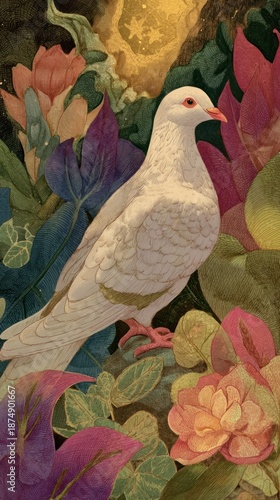 © Rawpixel.com, Fototapeta premium Dove in fairy tale colorful dove mobile wallpaper