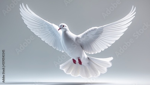 © -Quantum Pixels-, Obraz premium Dove in flight against a white background.