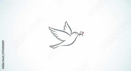 Fototapeta premium Dove of peace: A simple outline of a dove carrying an olive branch, symbolizing peace, hope, and serenity, presented on a minimalist backdrop.