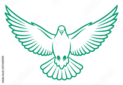 Fototapeta premium Dove of Peace Graphic in Emerald Green Outline on White Background