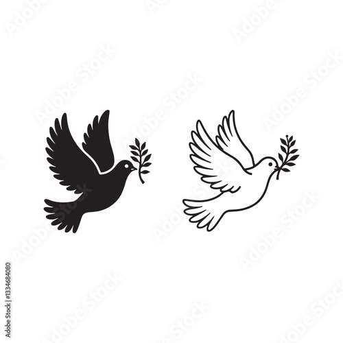 © Abu, Obraz premium Dove of peace icon. Charming bird is flying, silhouette berd.