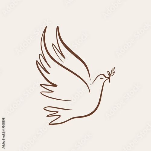 © Knstart Studio, Naklejka premium Dove of peace pigeon bird boho handdrawn style vector illustration art