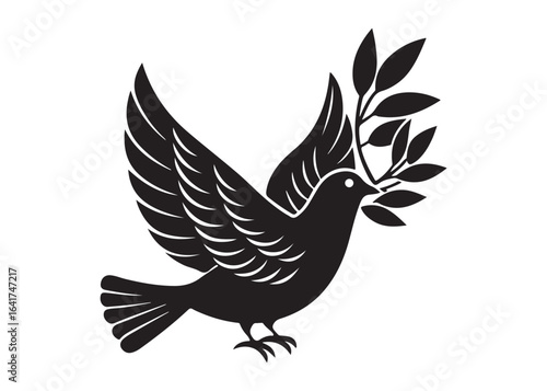 Obraz premium Dove of Peace with Olive Branch Silhouette Vector Isolated on White Background.