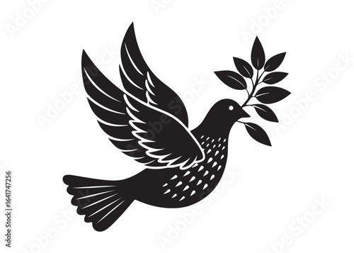 Obraz premium Dove of Peace with Olive Branch Silhouette Vector Isolated on White Background.