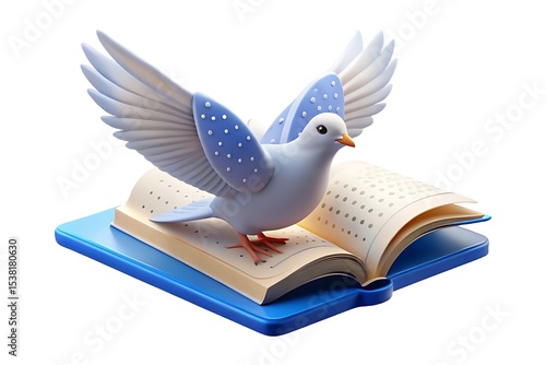 © Lovely, Fototapeta premium Dove on open braille book 3d render