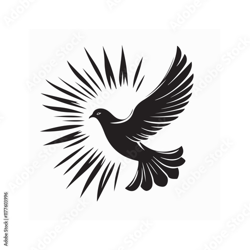 © Istianah, Obraz premium Dove Sun Image vector.Flying bird dove as a symbol of peace yellow sun Vector Image.