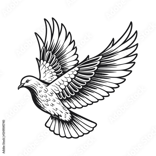 © Mizan, Obraz premium Dove vector illustration, hand drawn style, detailed vector, monochrome design, isolated on a white background