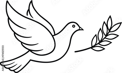 © Beauty, Obraz premium Dove with Olive Branch – Black and White Line Drawing Symbolizing Peace and Hope