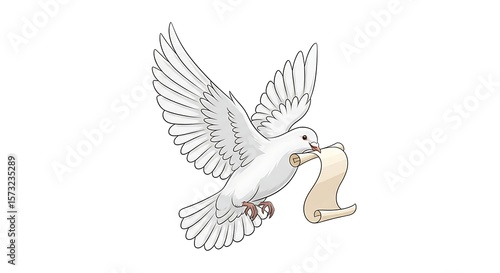 Obraz premium Dove with Scroll Vector – Peace Declaration Symbol on White