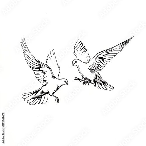 Obraz premium doves holding hands mid-flight sketch