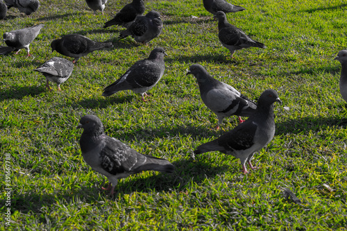 Obraz premium Doves walk on green grass