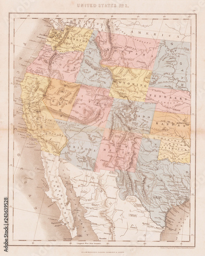 © PicturePast, Obraz premium 1864, Dower Map of the Western United States