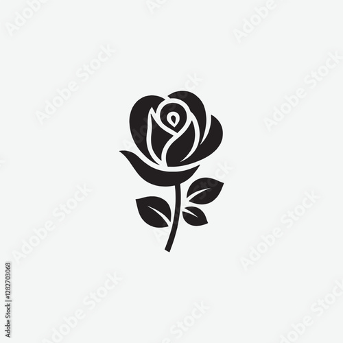 Obraz premium Download a beautifully minimal rose vector silhouette with a crisp white background. Perfect for logos, tattoos, and decorative designs. Get your high-quality vector now!