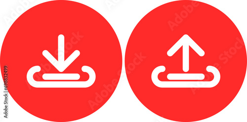 © Nuwirana, Obraz premium download and upload icon button on circle background vector