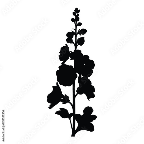 © VECTOR STORE, Naklejka premium Download black hollyhock flower silhouette vector illustration garden plant floral design element for art