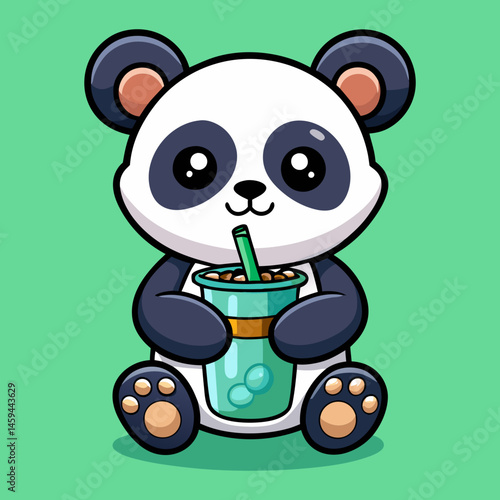 Fototapeta premium Download Cute Panda Holding Boba Milk Tea Drink Cartoon Vector Icon Illustration Eps File For Design.