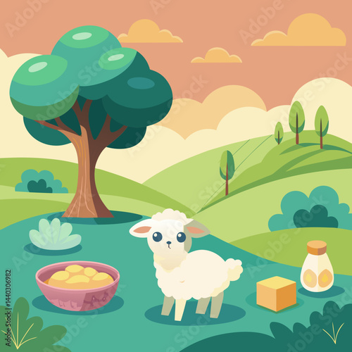 © MdHafizur, Naklejka premium Download Olive Grove And A Meadow Silhouette Vector Illustration Svg File For Design.