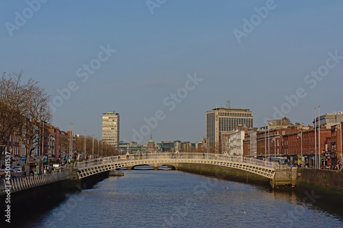 Naklejka premium Download preview Ha`penny pedestrian bridge over River Liffey in the city of...