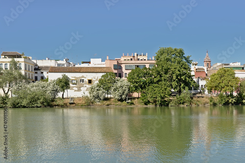 Fototapeta premium Download preview Quay of Guadalquivir river with colorful traditional houses...