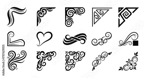 © Muzamil, Obraz premium Download vector decorative corner design elements and flourishes