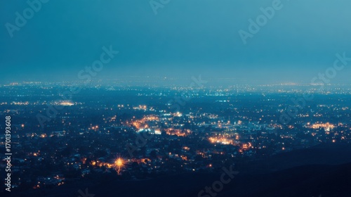 © Clara, Obraz premium downtown. A mesmerizing night cityscape glows with colorful lights against a dark sky. real-estate listings, architecture portfolios, designed for real-estate listing and luxury residence showcases.