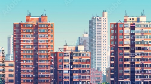 © Nicholas, Naklejka premium Downtown Atlanta Skyline showing several prominent buildings and hotels under a blue sky.