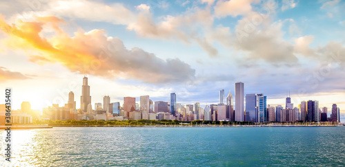 © f11photo, Obraz premium Downtown chicago skyline cityscape in USA