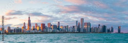 © f11photo, Obraz premium Downtown Chicago skyline o zachodzie słońca