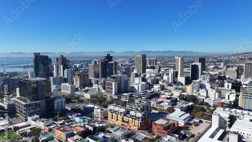 © bydronevideos, Fototapeta premium Downtown City At Cape Town In Western Cape South Africa. Town Scenery. Coast Cityscape. Cape Town At Western Cape South Africa. Tourism Travel. Downtown Skyline.