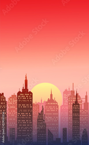 Fototapeta premium Downtown city wallpaper in the morning and evening landscape wallpaper Illustration vector style Sunlight colorful view background