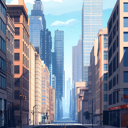© wacharagorn, Obraz premium Downtown cityscape at night with skyscrapers and office buildings under a twilight sky
