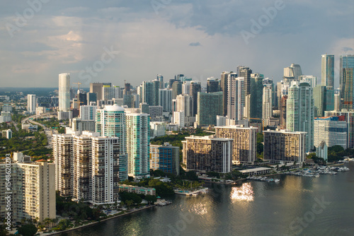 © bilanol, Fototapeta premium Downtown district of Miami in Florida, USA. Waterfront urban landscape of high skyscraper buildings near Biscayne Bay in modern American megapolis