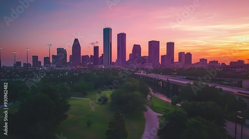 Obraz premium Downtown Houston Skyline at Sunset