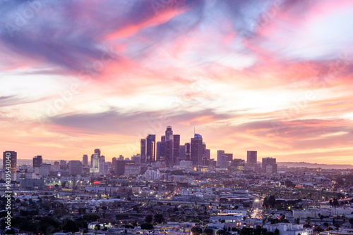 © chones, Fototapeta premium Downtown Los Angeles skyline at sunset